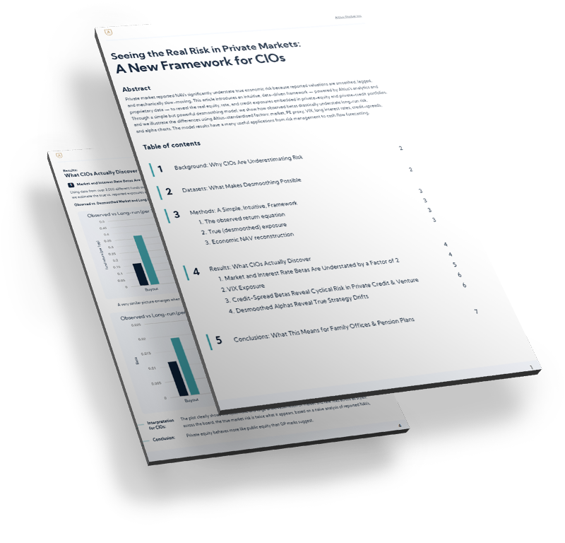This article introduces an intuitive, data-driven framework — powered by Altius’s analytics and proprietary data — to reveal the real equity, rate, and credit exposures embedded in private-equity and private-credit portfolios.